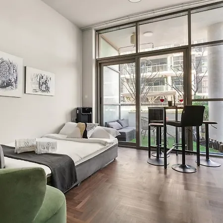 يوجد أيضًا منطقة المطبخ الصغير المجهز المزود بجميع أدوات المطبخ الضرورية. وتقع الشقة على بعد 21 كم من محطة قطار الخليج التجاري.
